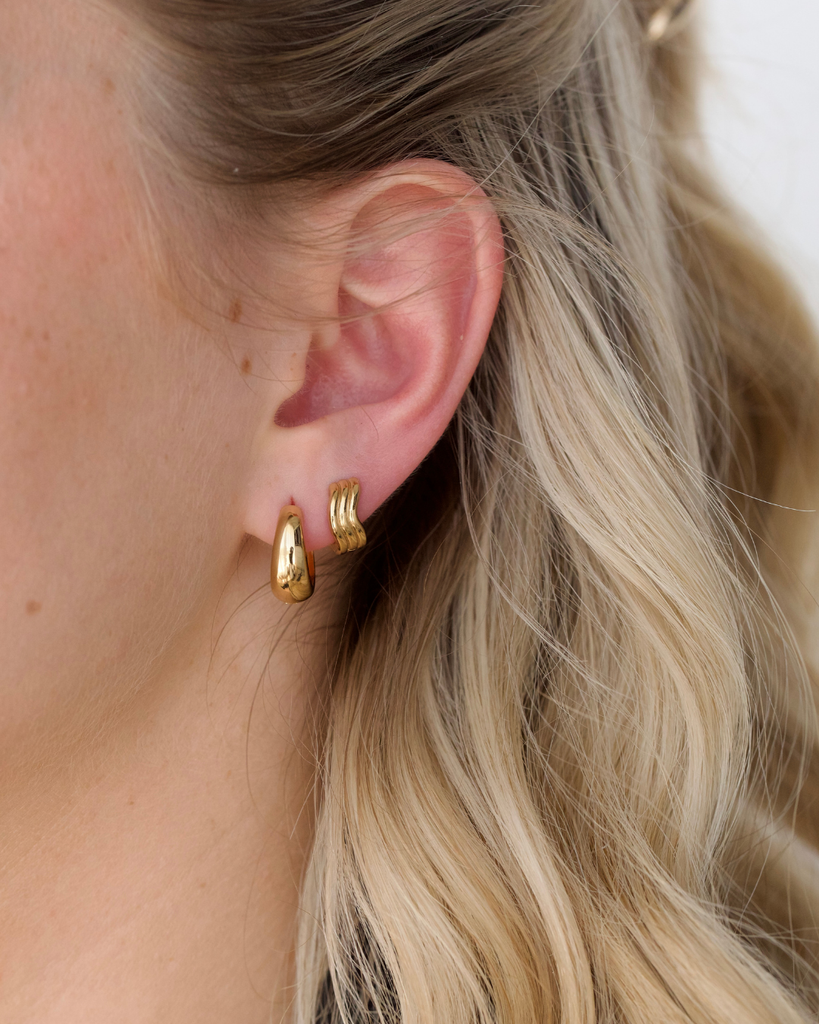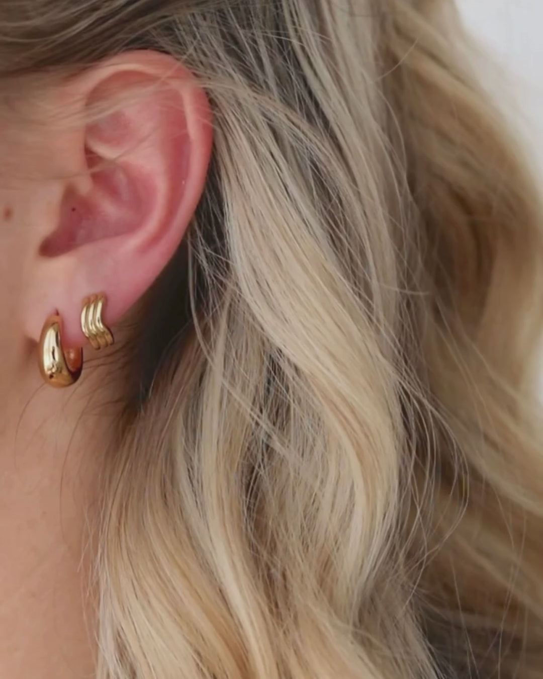 Say hello to your new go-to from our Luxe range. Small but far from subtle, the Mini Ripple Huggies bring wavy, sculptural energy in a tight little package. Crafted from 18K Gold Vermeil, they’re waterproof, durable, and made to shine stacked in your second or third piercing.