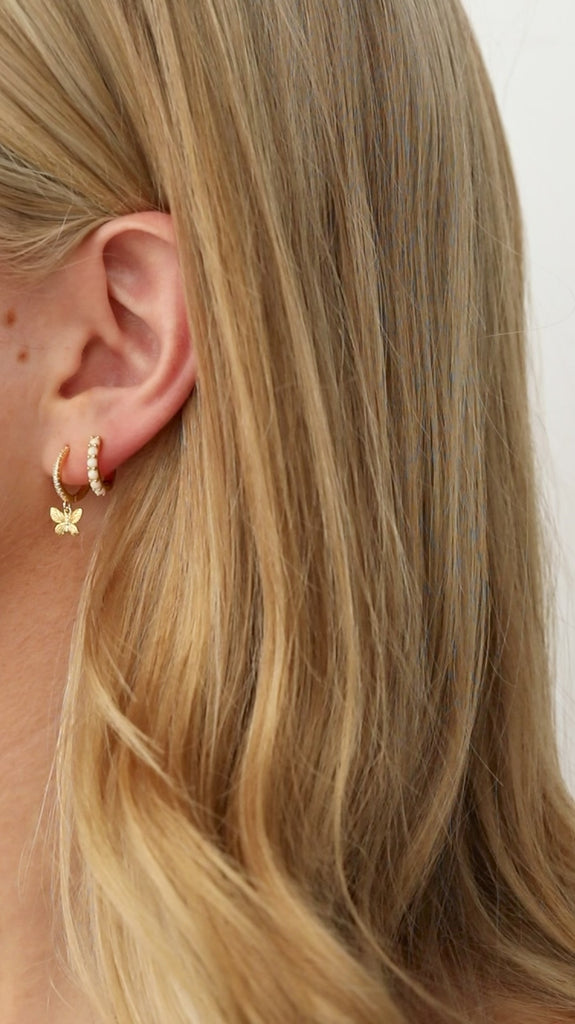 There’s something a bit magic about these. The Emilie Opal Huggies are lined with soft, glowing opals that catch the light just right. Set in 18K Gold Vermeil, they’re minimal but far from boring, the kind of piece you’ll wear on repeat without even thinking about it.