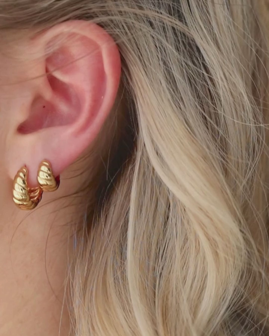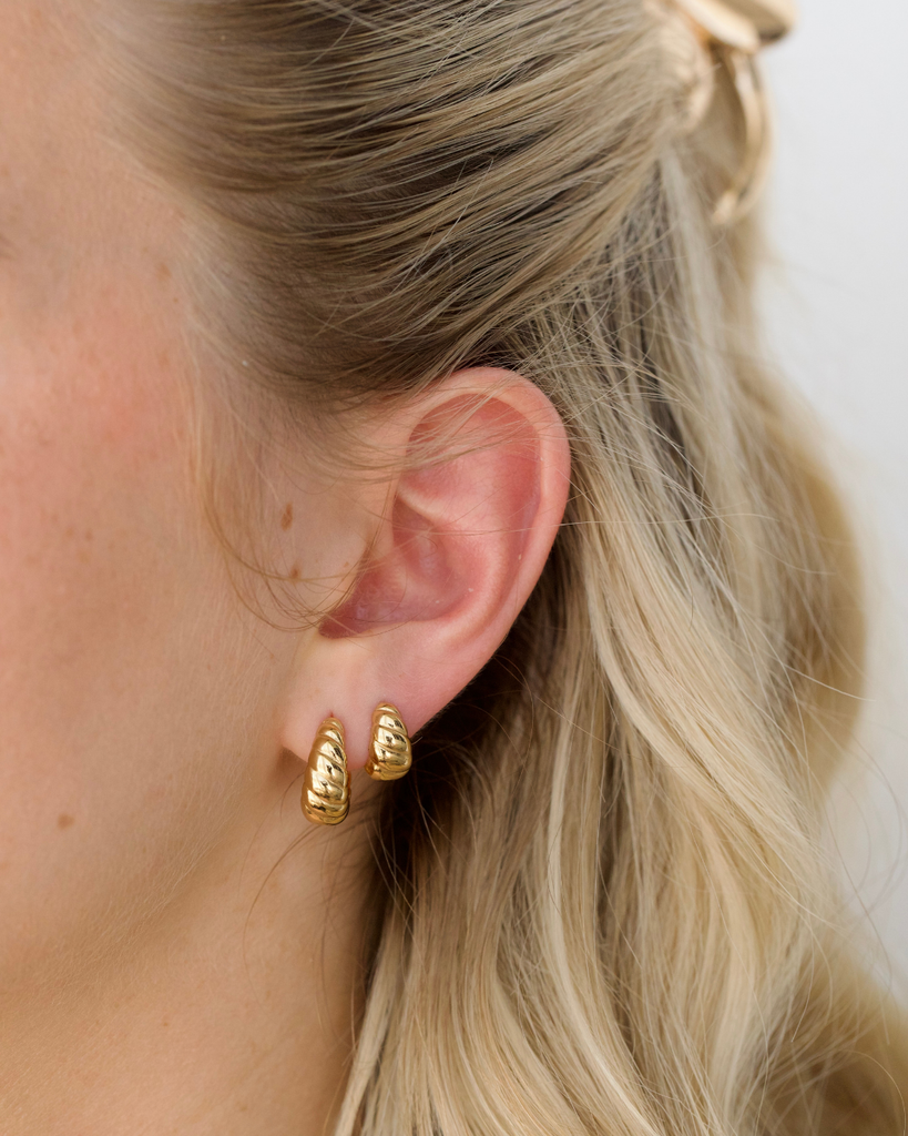 Meet the cool little sister to our Nova Twist Huggies. The Mini Nova Twist Huggie from our Luxe Range brings bold texture, and sculptural goodness in a snug 11mm size. Made from 18K Gold Vermeil, it’s perfect for second or third piercings and stacks effortlessly with our Nova Twist Huggies.