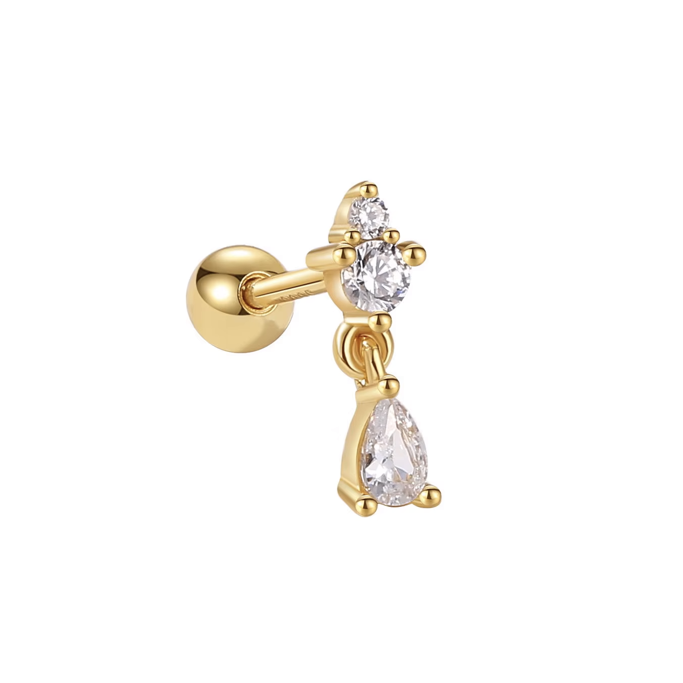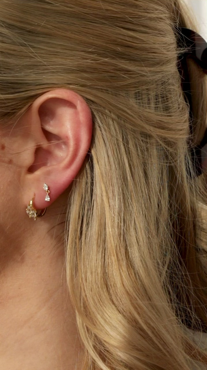Cute with a lil’ kick. The Sora Stud brings double the sparkle—three cubic zirconias stacked up top, plus a cheeky dangly charm that catches the light just right. All in Gold Vermeil, so it's got that luxe feel without the fuss. Solo stud, big energy.