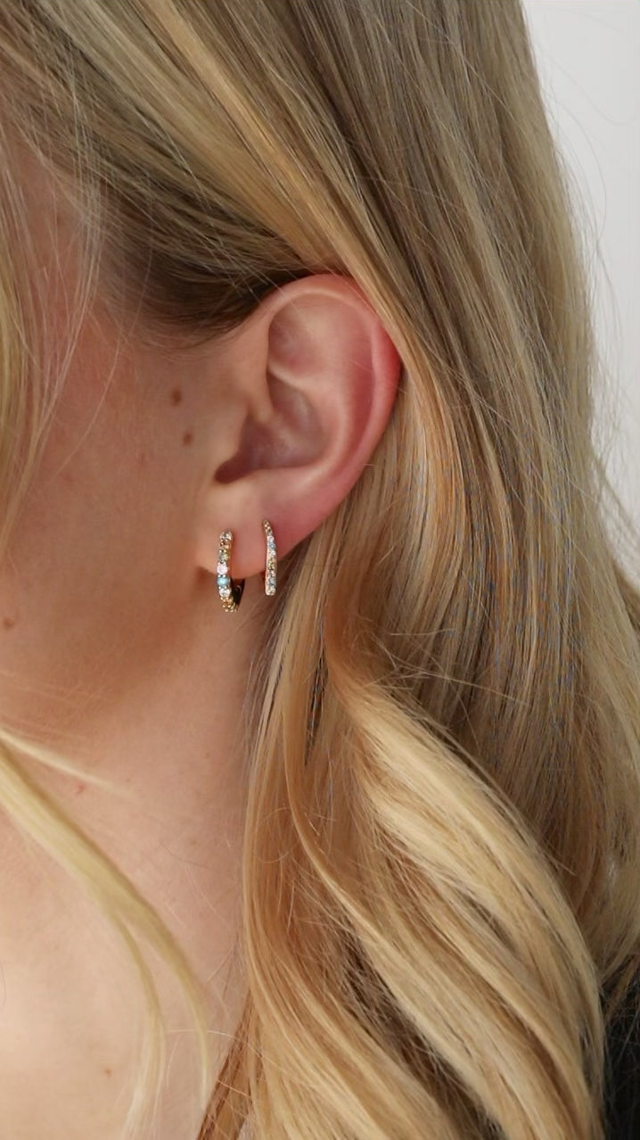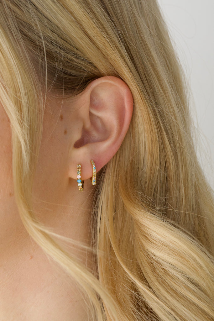 The Billie Huggies are here to bring the colour party to your lobes. A classic circular shape, dressed up with pastel-coloured zircon stones across the front, they’ve got that perfect mix of playful and polished. Think easy everyday wear with a subtle splash of fun. The pop of colour? Pure summer vibes, all year round.