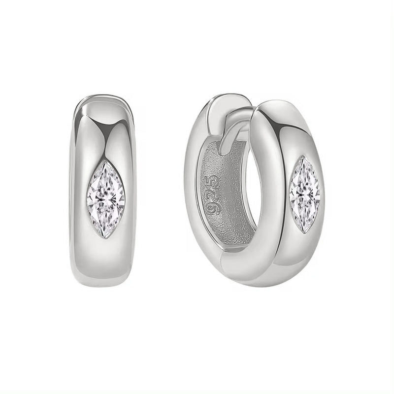 Embrace sophistication with the Caitlin Huggies. These thick huggie earrings boast a stunning diamond-shaped cubic zirconia at the center, exuding sleekness and comfort. Crafted from Sterling Silver, they are a must-have for your jewellery collection.