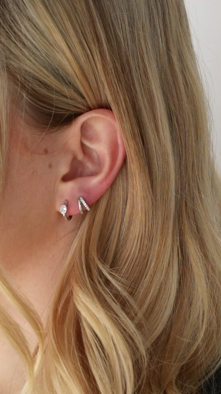 Double the hoops, double the fun. The Saige Huggies give the illusion of two earrings in one with no extra piercings needed. One side sparkles with zircon stones, the other keeps it sleek and simple. It’s a little unexpected, a little edgy, and seriously cool.
