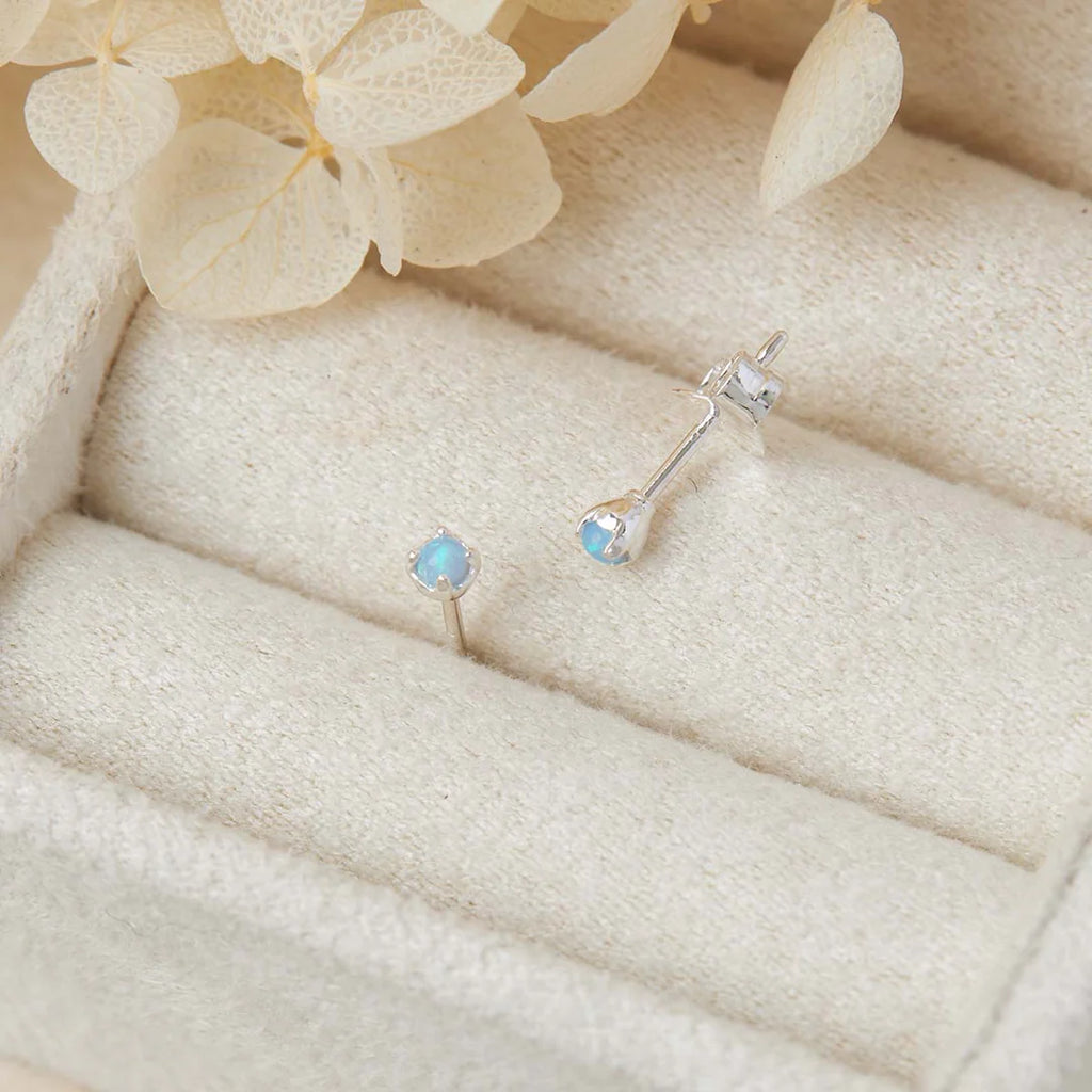 Understated and quietly luminous, the Delicate Opaline Studs are crafted in polished Sterling Silver and set with soft iridescent opaline. Their subtle glow adds a refined touch to any ear stack: effortless, elegant, and made to be lived in.