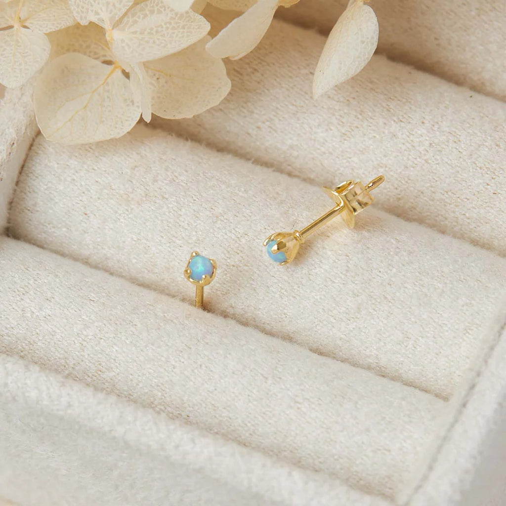 A quiet kind of glow. The Delicate Opaline Studs in Gold Vermeil are all about subtle shimmer, set with soft blue opaline and crafted in thick 18K Gold over Sterling Silver. Refined, wearable, and just the right amount of dreamy.