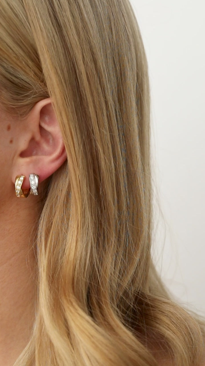Curves in all the right places. The Lila Huggies feature a sculptural twist with a row of Cubic Zirconia for just the right amount of sparkle. Made from solid Sterling Silver with a chunky 6mm profile, they’re bold enough to wear solo, but love a stack too.