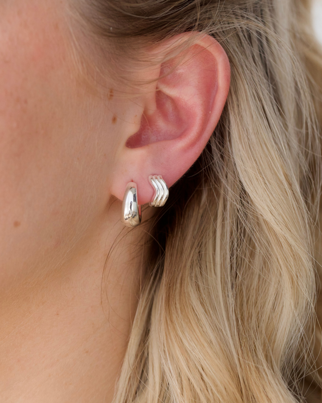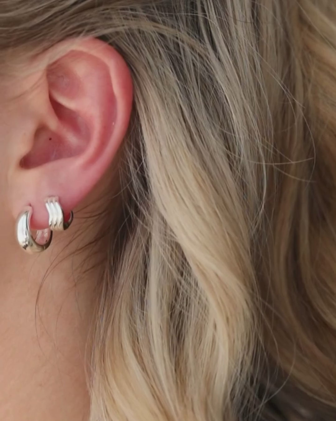 Say hello to your new go-to from our Luxe range. Small but far from subtle, the Mini Ripple Huggies bring wavy, sculptural energy in a tight little package. Crafted from 925 Sterling Silver, they’re waterproof, durable, and made to shine stacked in your second or third piercing.