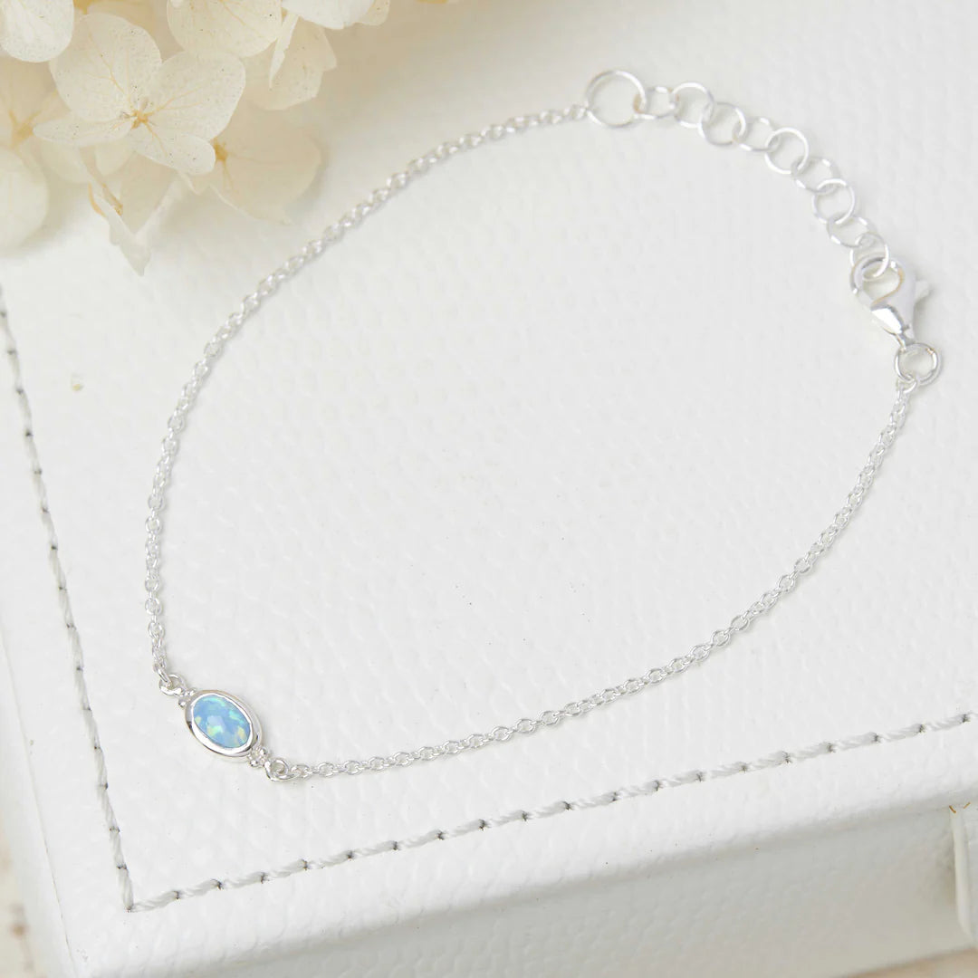 Delicate with a touch of the otherworldly. The Moon Song Opal Bracelet features a luminous 5mm opaline set on a fine Sterling Silver chain, softly glowing like moonlight on skin. Wear it solo or layered for a little everyday magic.