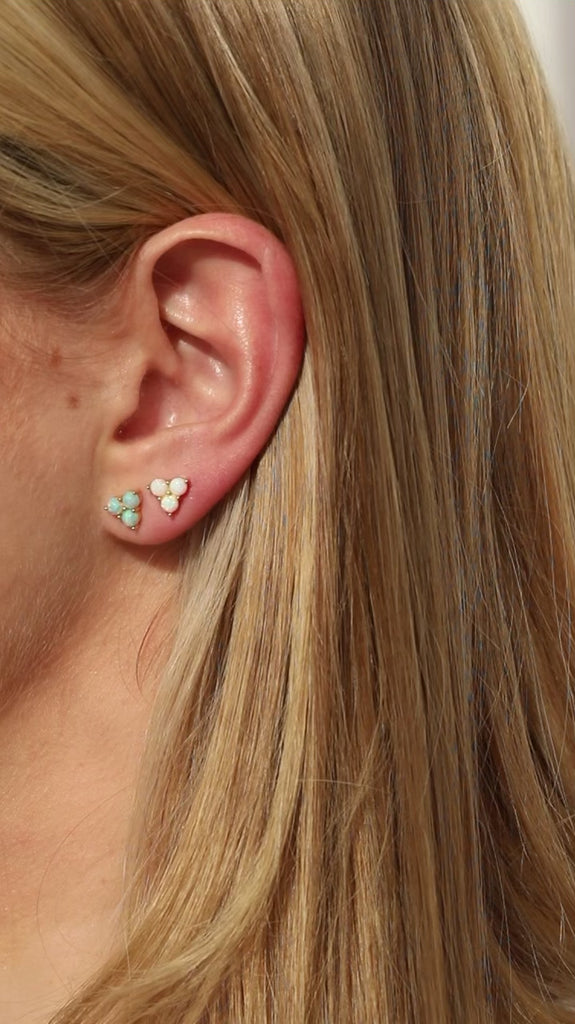 Small but seriously good, our Nira Snow Studs bring that quiet cool energy. A triangle of 3mm lab-grown opals set in Gold Vermeil, they’re subtle, shimmery, and just a little unexpected. Perfect for stacking or standing solo (they’ve got range).